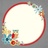 Chevron gray with a red circle around a creamy interior and cutesy flowers with a perky dotted blue backside. Perfect for pictures of gatherings or events as well as cards.